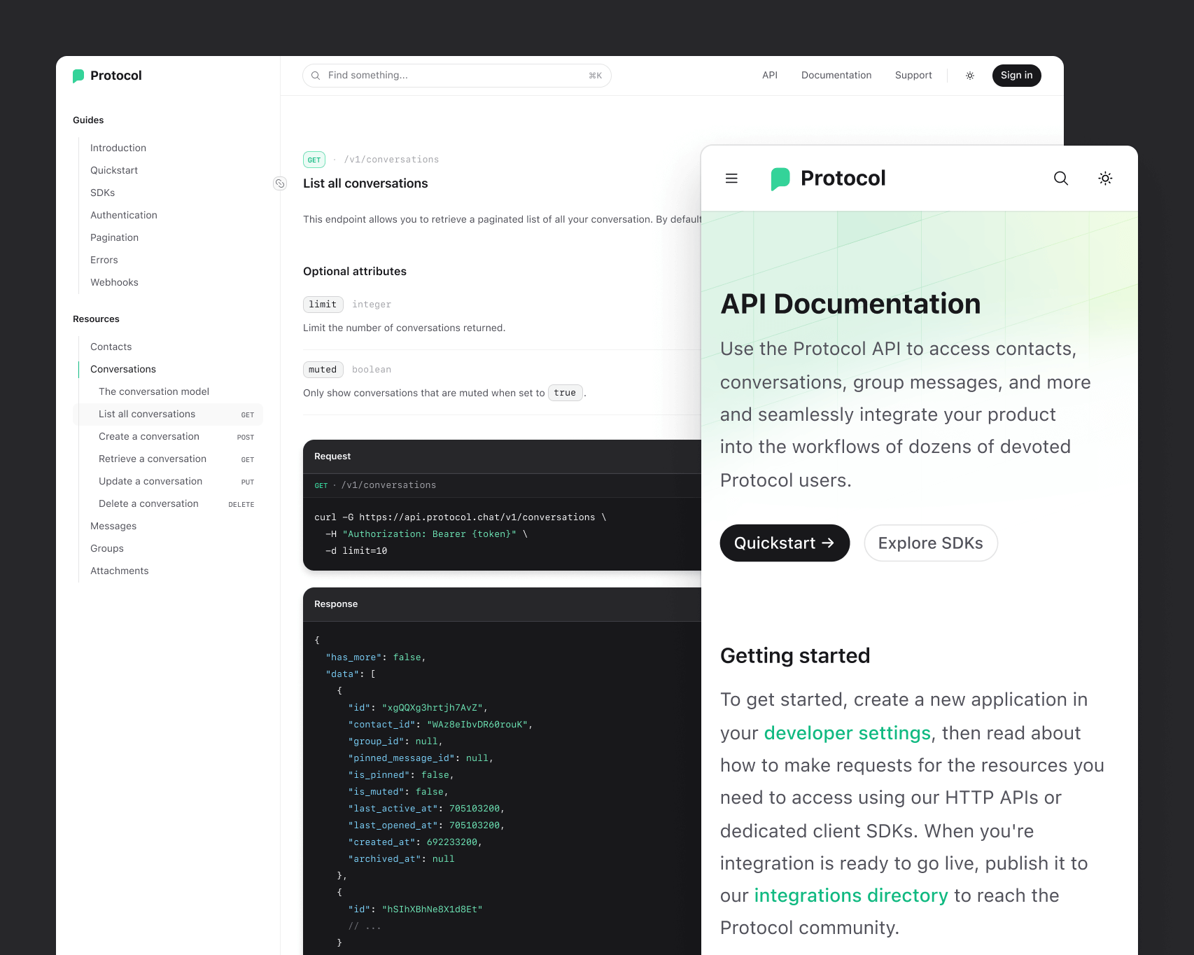 It does not matter if you have an API if nobody knows how to use it. Teach people the ins and outs of OAuth 2.0 and JWTs in style with Protocol, a beautiful API documentation template.
